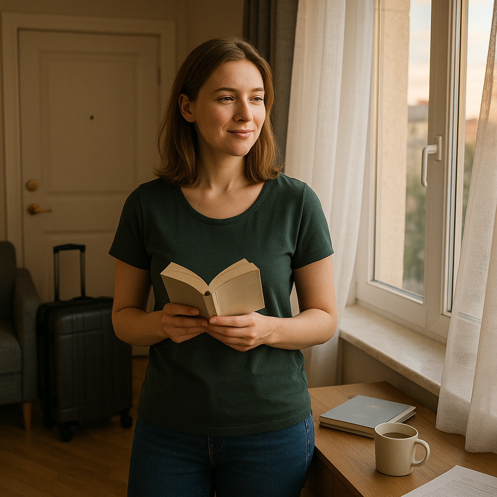 Тёплый июньский вечер. Лена сидит у раскрытого окна в гостиной, в руках — новая книга. За спиной — дом, в котором никто не диктует женщине, где жить и кому что отдавать. Каждый предмет в квартире выбран по собственному вкусу, каждое решение принято без оглядки на чужие ожидания.