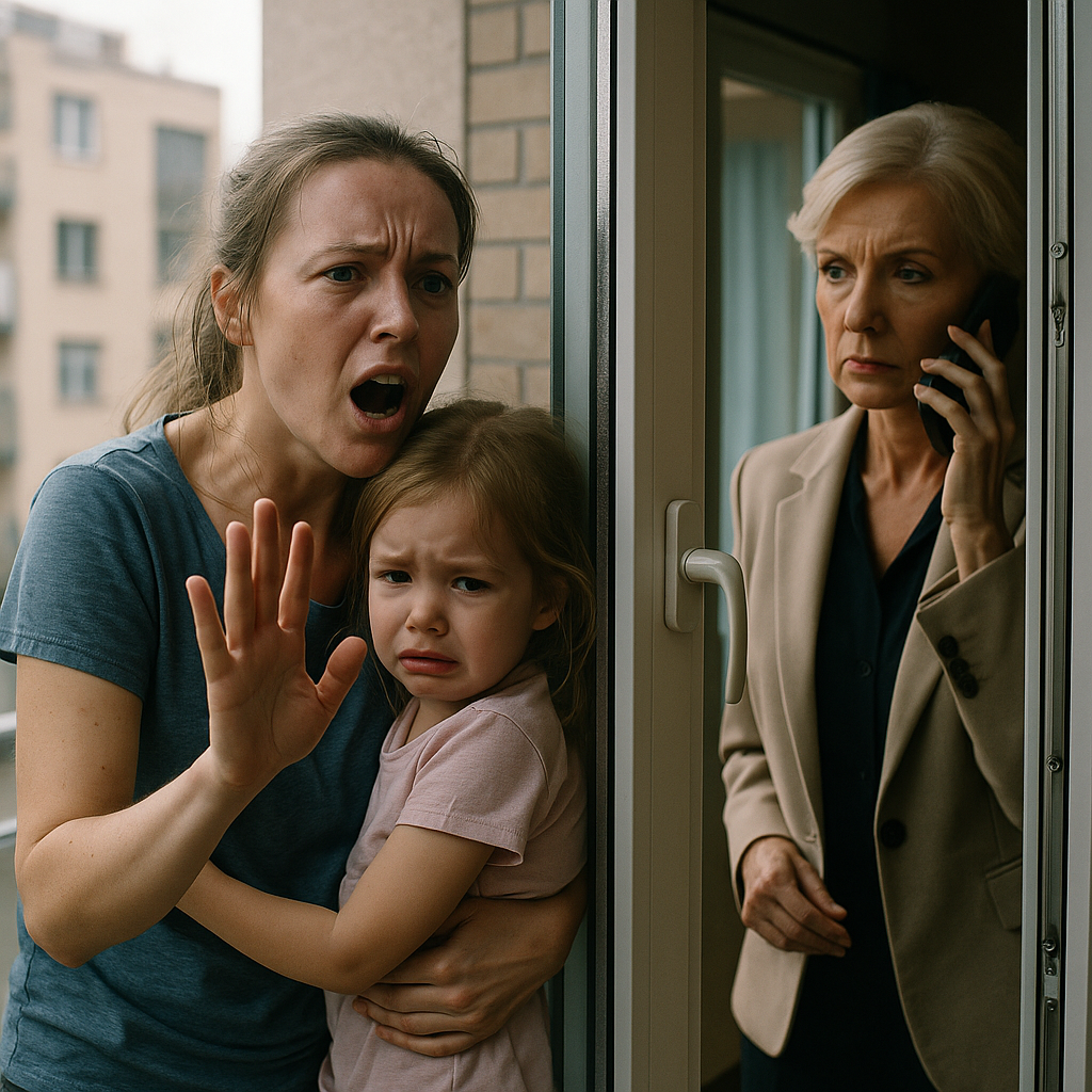 Елена вышла на балкон, пытаясь успокоить дочь, но та продолжала плакать и вырываться. В этот момент она услышала щелчок замка – дверь на балкон захлопнулась. В панике Елена дёрнула ручку, но безрезультатно. Вера Павловна смотрела на них через стекло с торжествующей улыбкой.