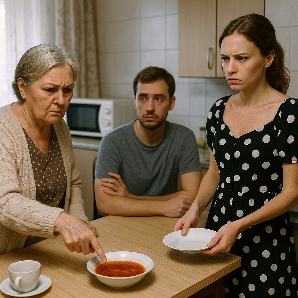 — Соль лишняя чувствуется, — наконец вынесла вердикт свекровь, аккуратно вытирая губы салфеткой. — И укроп зачем-то в борщ.