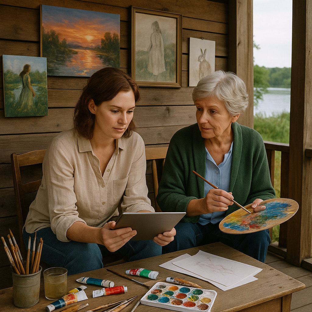 Лето на Волге шло своим чередом. Утром река блестела, как зеркало, отражая облака, а к вечеру над водой стелился туман, и казалось, что домик парит над землёй. Ксения работала над своими иллюстрациями, а Тамара Петровна всё чаще сидела рядом, пробуя новые техники. Она и правда взялась за планшет – неуклюже, но с таким азартом, что Ксения невольно улыбалась.