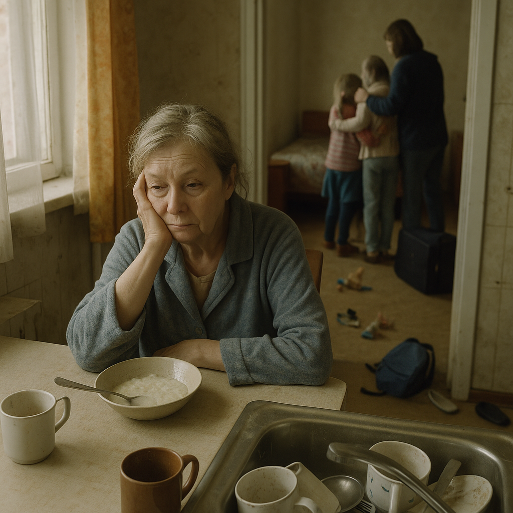 На следующее утро женщина проснулась с тяжёлым сердцем. Она уже не чувствовала ни злости, ни раздражения — только усталость, которая сковывала каждое движение. На кухне, как обычно, царил беспорядок: чашки, крошки, детские игрушки. Валентина машинально взялась за тряпку, но тут же бросила её обратно. Впервые за долгие годы ей не хотелось ничего делать.